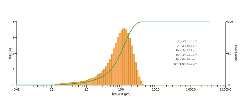 產(chǎn)品粒度D90: 10~45微米之間可調(diào)。粒形好,粒度分布窄